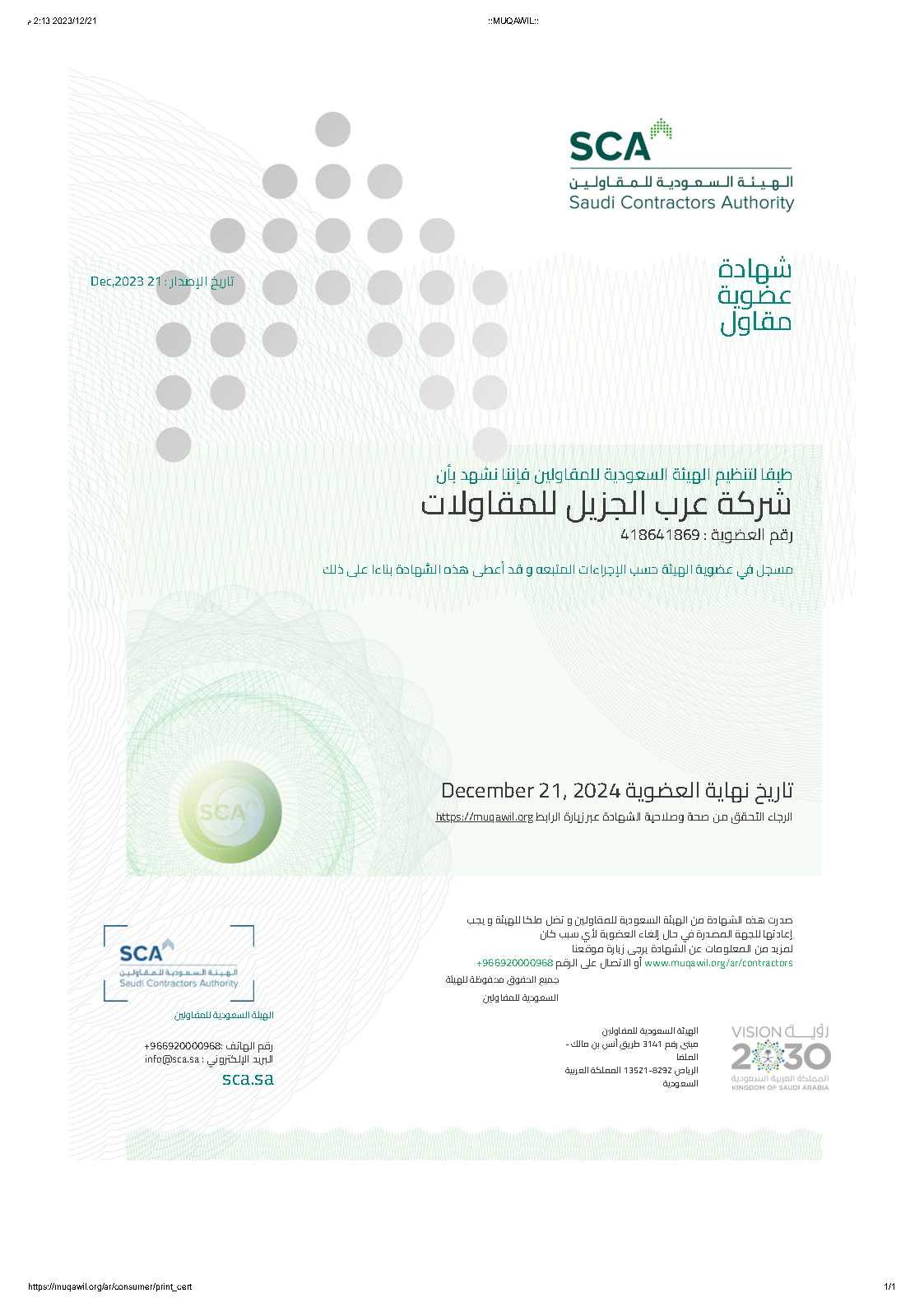 Arab Al-Jazil Company was established in 1422 AH as a Saudi limited liability contracting company.